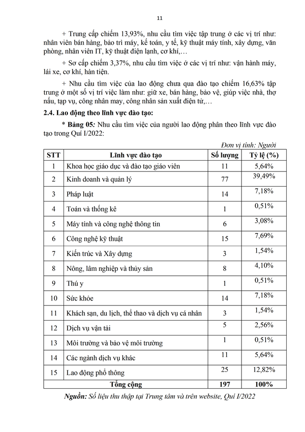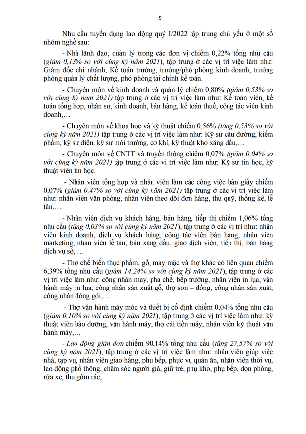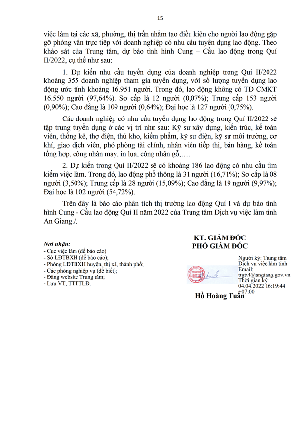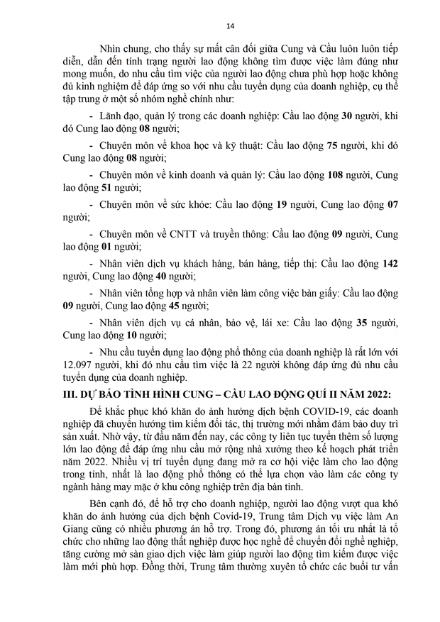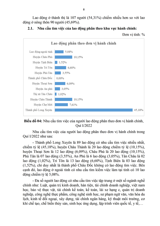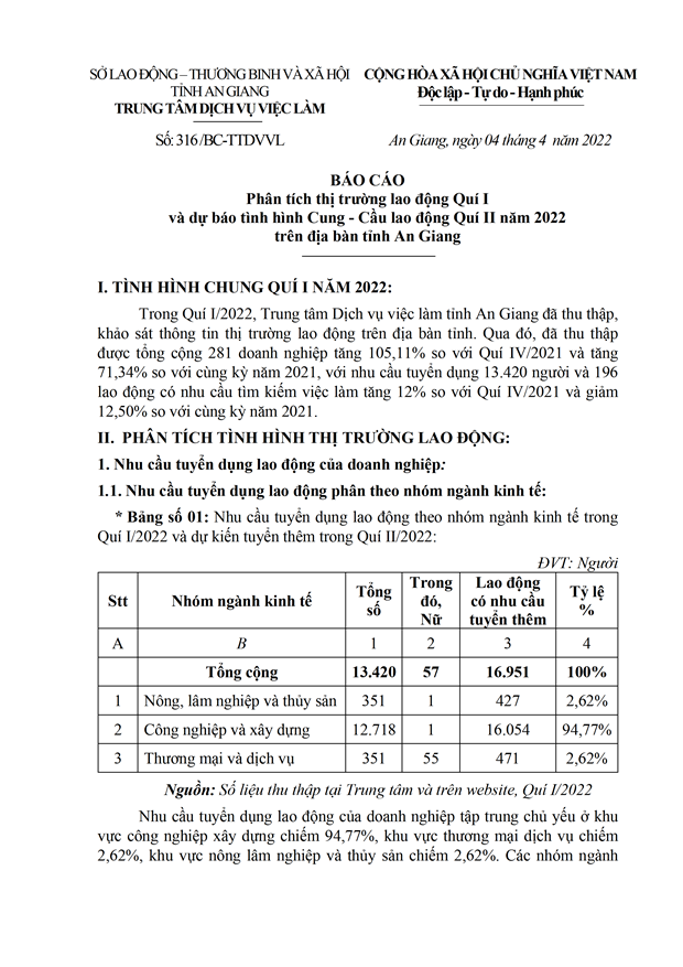 Báo cáo Phân tích thị trường lao động Quí I và dự báo tình hình Cung - Cầu lao động Quí II năm 2022 trên địa bàn tỉnh An Giang