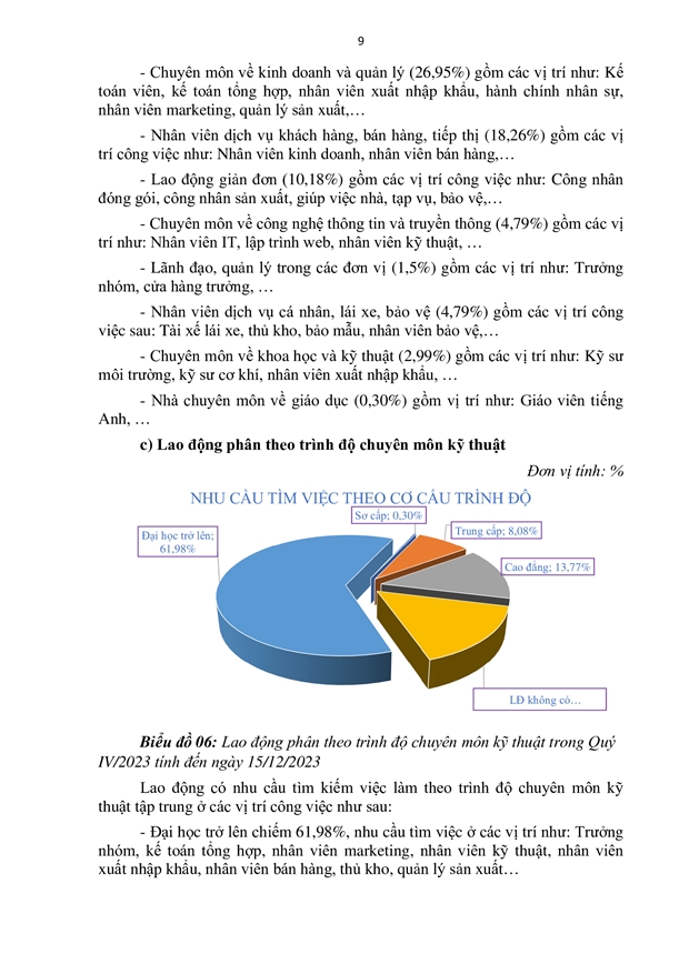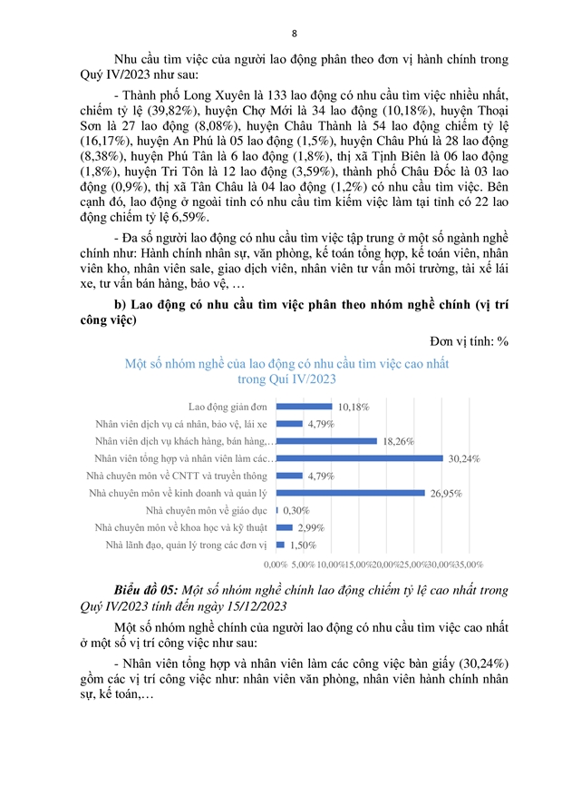 Báo cáo Phân tích thị trường lao động Quý IV năm 2023 và dự báo tình hình Cung - Cầu lao động Quý I năm 2024 trên địa bàn tỉnh An Giang