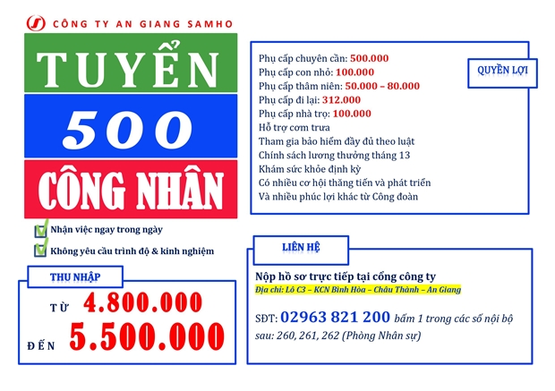 CÔNG TY AN GIANG SAMHO TUYỂN DỤNG