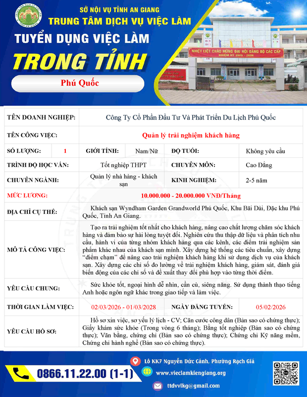 Công Ty Cổ Phần Đầu Tư Và Phát Triển Du Lịch Phú Quốc tuyển dụng vị trí Quản lý trải nghiệm khách hàng