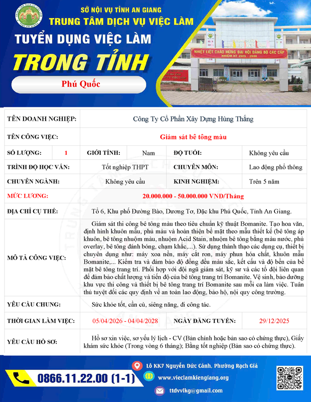Công Ty Cổ Phần Xây Dựng Hùng Thắng tuyển dụng Giám sát Bê tông