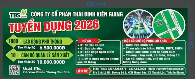 Công ty CP Thái Bình Kiên Giang thông báo tuyển dụng