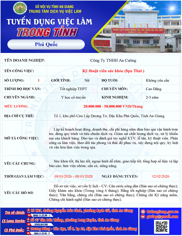 Công Ty TNHH An Cường tuyển dụng tuyển dụng kỹ thuật viên spa Thái