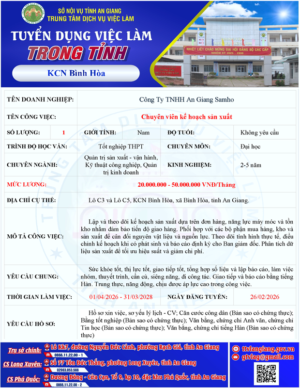 CHI NHÁNH CÔNG TY CP RAU QUẢ THỰC PHẨM AG - NHÀ MÁY BÌNH LONG THÔNG BÁO TUYỂN DỤNG