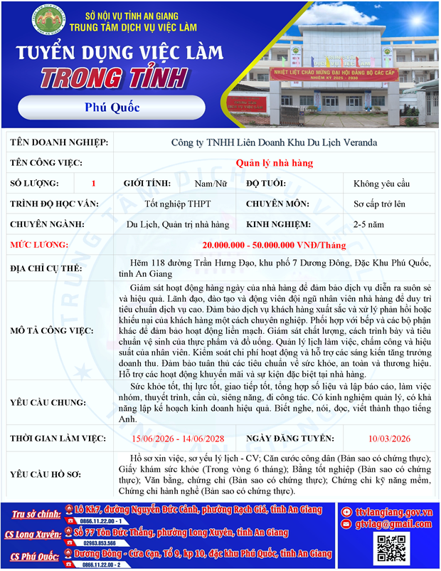 Công ty TNHH Liên Doanh Khu Du Lịch Veranda Tuyển dụng