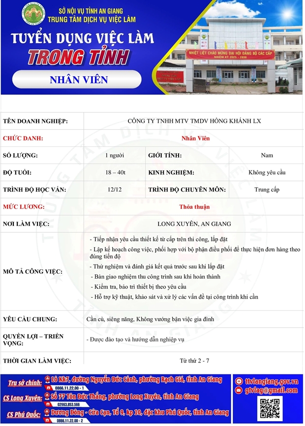 Liên hệ với Trung tâm: Phòng Đào tạo - Tư vấn Việc làm, Trung tâm Dịch vụ việc làm tỉnh An Giang