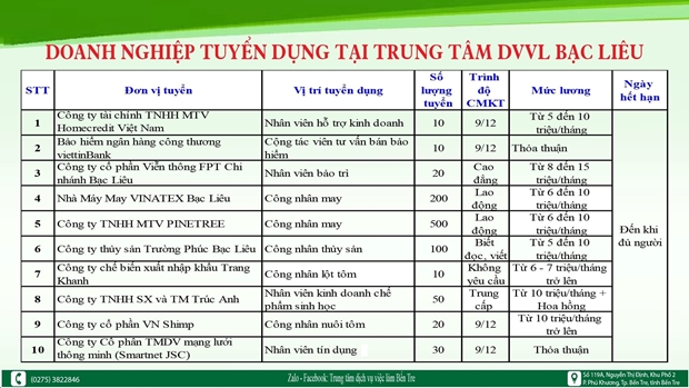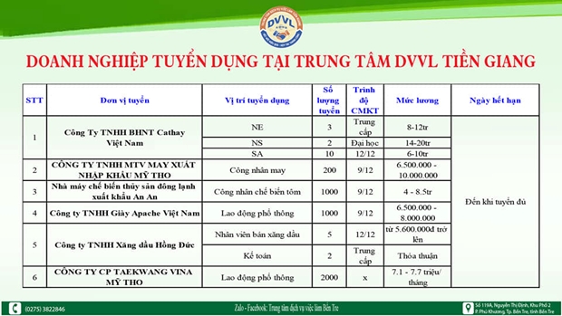 Zalo: Trung tâm Dịch vụ việc làm tỉnh An Giang