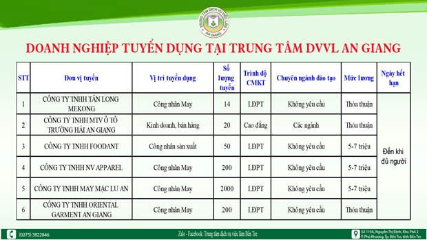 TRUNG TÂM DỊCH VỤ VIỆC LÀM TỈNH AN GIANG