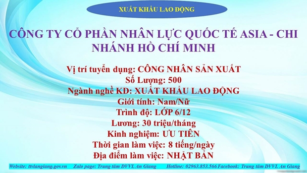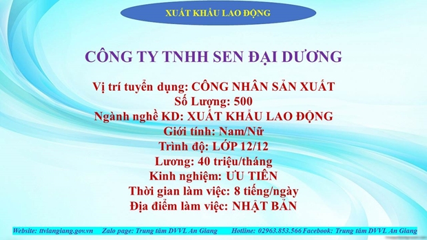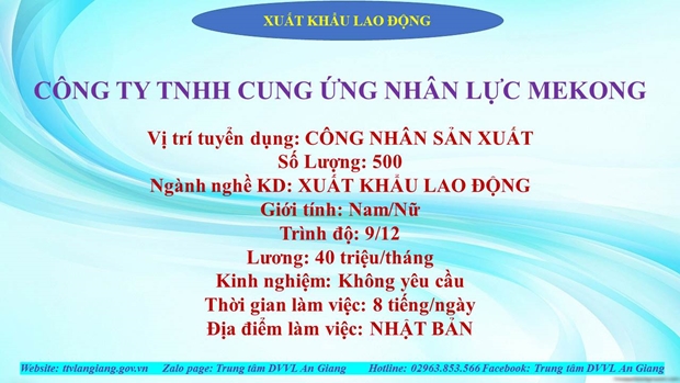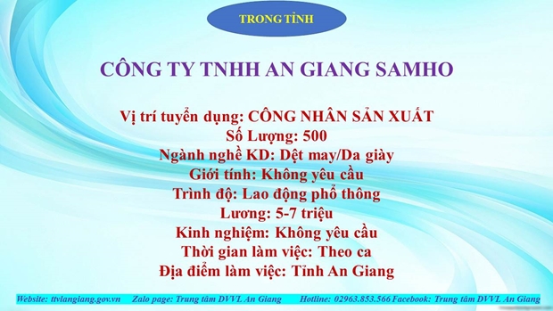 TUYỂN CÔNG NHÂN LÀM VIỆC TẠI BÌNH HÒA - AN GIANG