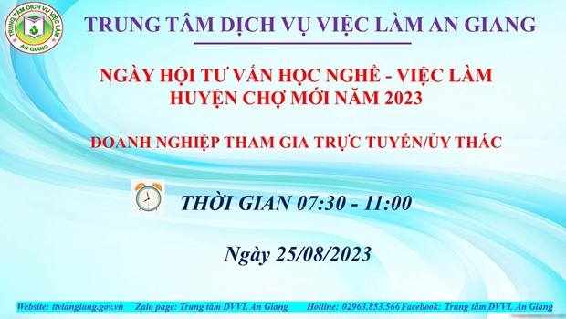 NGÀY HỘI TƯ VẤN HỌC NGHỀ - VIỆC LÀM HUYỆN CHỢ MỚI NĂM 2023 (DOANH NGHIỆP THAM GIA TRỰC TIẾP VÀ TRỰC TUYẾN)