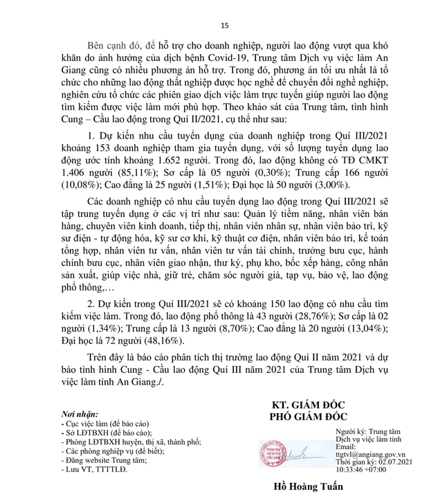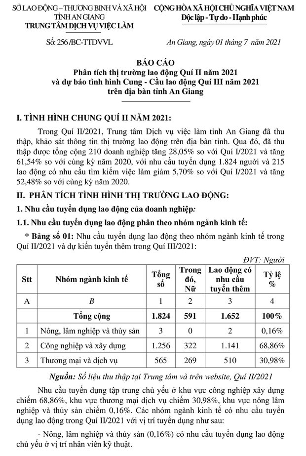 Trong Quí II/2021, Trung tâm Dịch vụ việc làm tỉnh An Giang đã thu