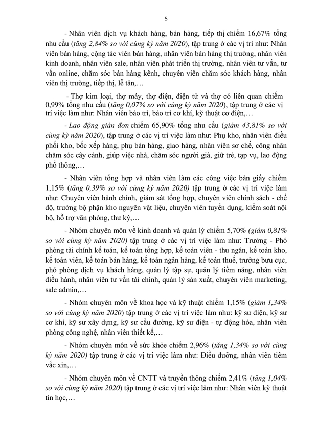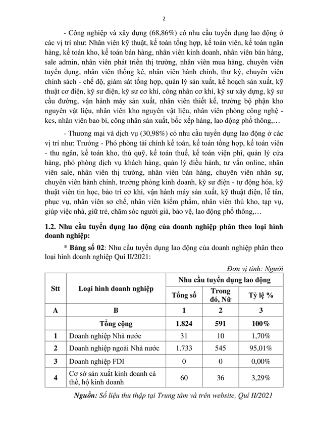 61,54% so với cùng kỳ năm 2020, với nhu cầu tuyển dụng 1.824 người và 215