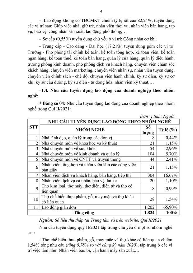Phân tích thị trường lao động Quí II năm 2021 và dự báo tình hình Cung - Cầu lao động Quí III năm 2021