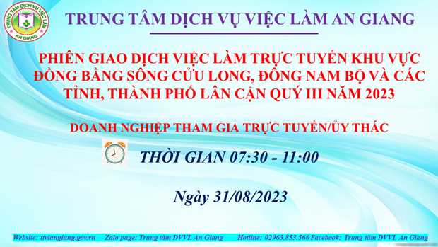 PHIÊN GIAO DỊCH VIỆC LÀM TRỰC TUYẾN KHU VỰC ĐỒNG BẰNG SÔNG CỬU LONG, ĐÔNG NAM BỘ VÀ CÁC TỈNH, THÀNH PHỐ LÂN CẬN QUÝ III NĂM 2023