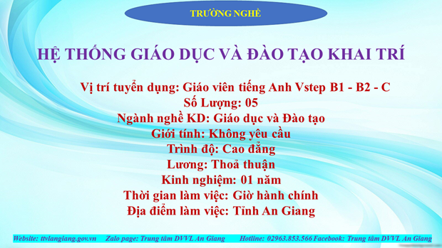 Trung tâm Ngoại ngữ An Giang tuyển dụng