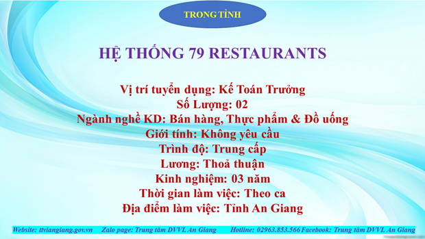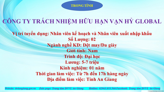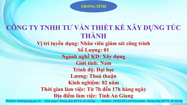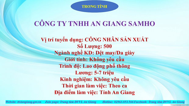 Địa điểm: Trung tâm Dịch vụ việc làm An Giang;
