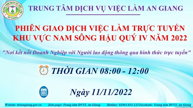 PHIÊN GIAO DỊCH VIỆC LÀM TRỰC TUYẾN KHU VỰC NAM SÔNG HẬU QUÝ IV NĂM 2022