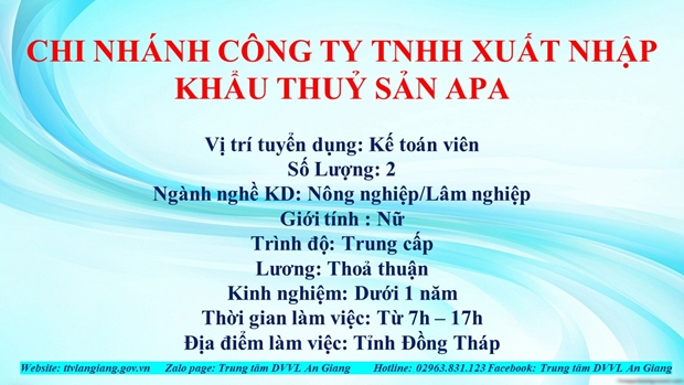 TRUNG TÂM DỊCH VỤ VIỆC LÀM TỈNH AN GIANG