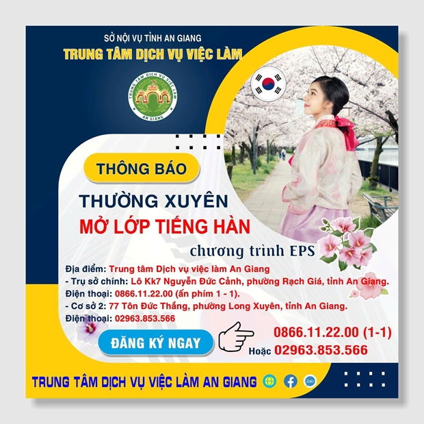 Liên hệ với Trung tâm: Phòng Đào tạo - Tư vấn Việc làm, Trung tâm Dịch vụ việc làm tỉnh An Giang