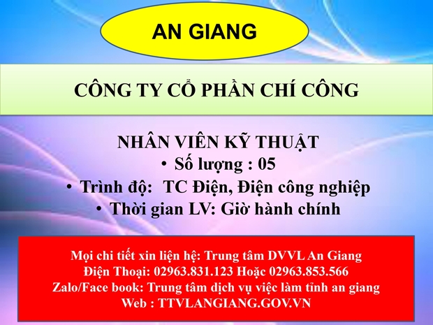 Kỹ Thuật điện Công NghiệpCÔNG TY TNHH TIẾN BỘ12-15 triệuAn Giang