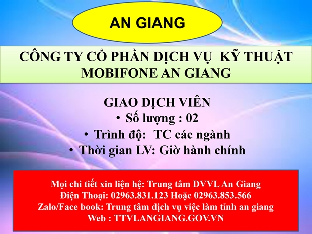 TRUNG TÂM DỊCH VỤ VIỆC LÀM TỈNH AN GIANG