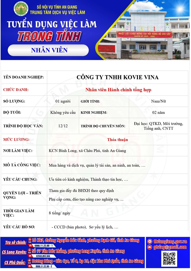 TRUNG TÂM DỊCH VỤ VIỆC LÀM TỈNH AN GIANG THÔNG BÁO TUYỂN DỤNG VIỆC LÀM TRONG TỈNH