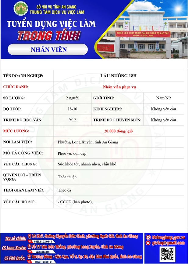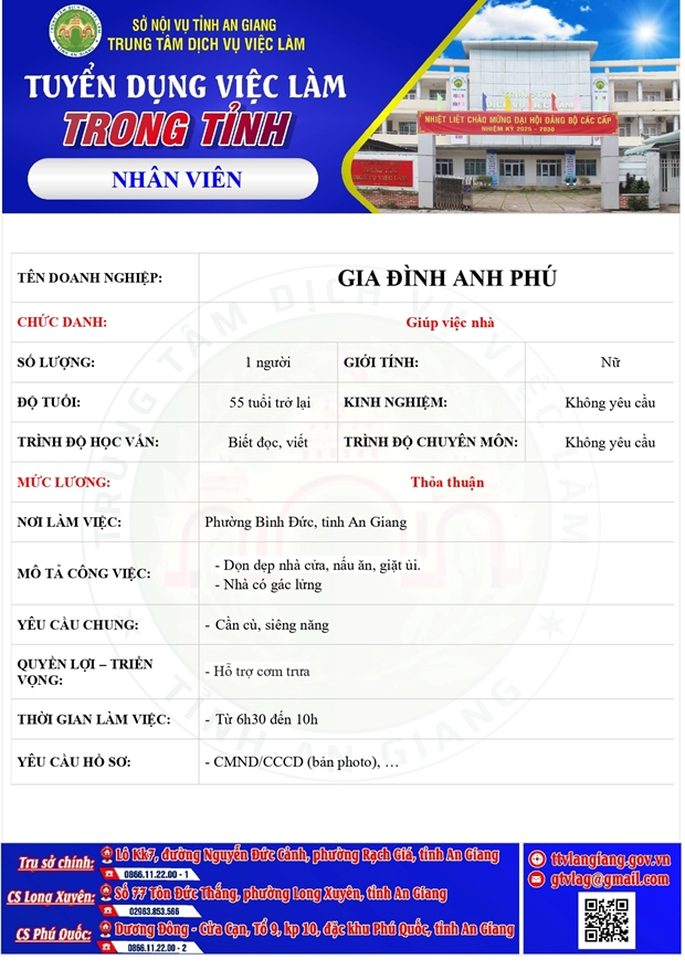 - Facebook: Trung tâm Dịch vụ việc làm tỉnh An Giang
