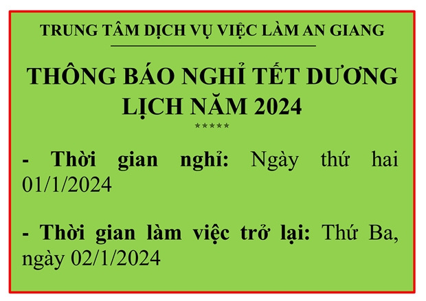 THÔNG BÁO NGHỈ TẾT DƯƠNG LỊCH NĂM 2024